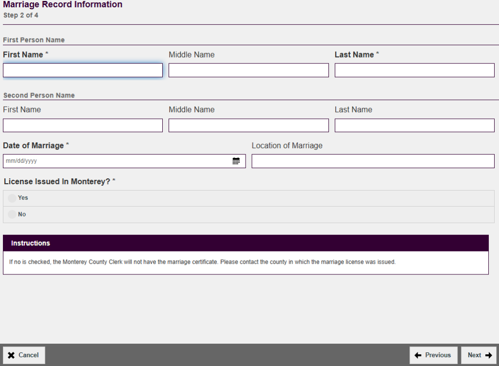 Monterey County marriage records and Monterey County divorce records can be requested through online systems, in-person visits, or by mail. Each method allows users to obtain certified copies and other official documents based on their needs and eligibility. Monterey County Court Getting these records involves a clear request procedure through the county clerk or court system. Users need basic details like full names, dates, and case information to complete a court records access request. The method chosen often depends on speed, convenience, and whether certified copies are required for legal use.